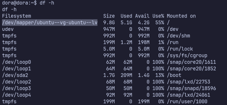root (/) is mounted on /dev/mapper/ubuntu—vg-ubuntu—lv