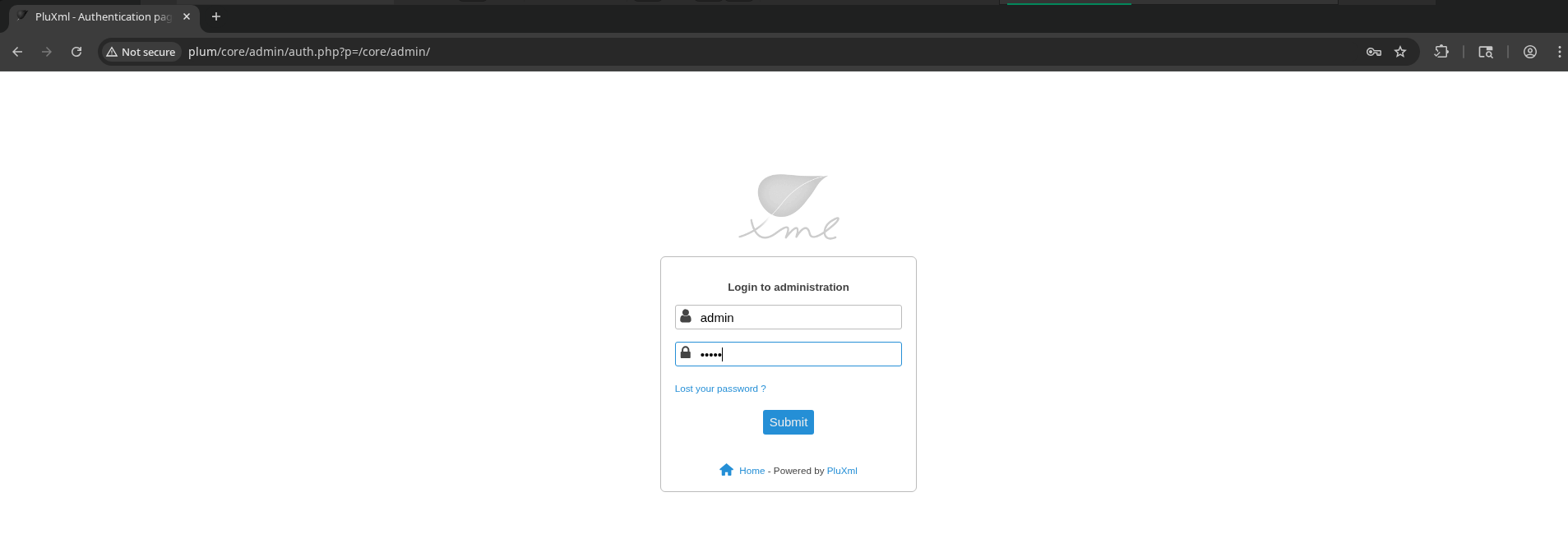I found a POC exploit that I’ll try for conevnience: https://github.com/erlaplante/pluxml-rce